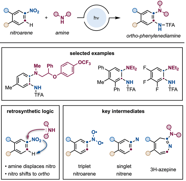 “A photochemical strategy for ortho-phenylenediamines synthesis via dearomatization–rearomatization coupling between nitrobenzenes and amines.”