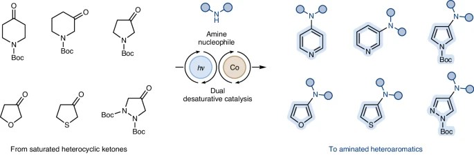 “A general synthesis of electron rich and electron poor aminated heteroaromatics by desaturative catalysis.”